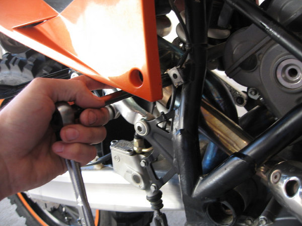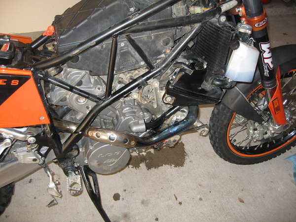 So you start of by stripping the beast down. Remove any tank guards / tank bags you have on your bike and the right side tank. You also need to remove the front header pipe to gain sufficient access, to do this you may have to loosen the right hand rear side panel off (but not fully remove) to gain access to the rear header pipe clamp. With a stock bash plate remove the right side cover, with an aftermarket bash pate remove the front two mounting bolts and swing the plate down out of the way, or remove it completely.