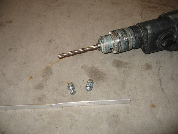 Now you need to be a little creative. To prevent damage to the water pump drive mechanism in any way, it is advisable to hold the impeller using a suitable tool. It took about a minute to make the tool and here’s how. Get some half inch flat bar of some kind (light duty is fine) and drill two holes in t to mount a couple of nuts and bolts. These should be a distance apart so they are approximately in the center of the blades on the impeller.