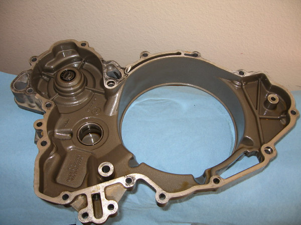Clean the gasket face on the engine side and the inner clutch cover inner face thoroughly removing all remaining signs of gasket material and taking care not to drop debris into the engine or to damage the mating surface at all. Ensure all items are clean prior to re-assembly.