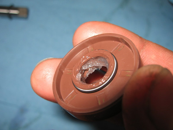 The new seal double edged and is symmetrical so it does not matter which way around it is installed. It comes dry and remember, “never mount dry”!! So I prefer to use a little silicon paste or light silicon grease to lubricate the seal well and prevent immediate wear or damage.