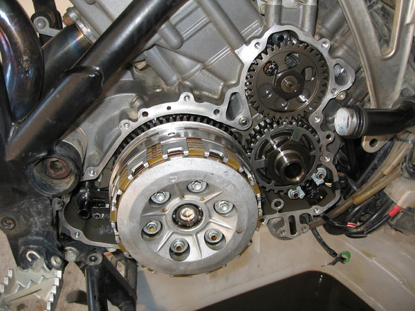 Remove all of the mounting bolts for the inner clutch cover. You do not have to remove the outer clutch cover from the inner clutch cover but one of the bolts (top left) runs through both and has to be removed. I removed the outer cover in the photos. Make a note of their positions as some are slightly different in length.