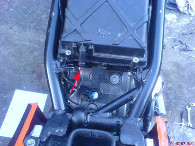 Plug the hole in the airbox (use same method for rear):