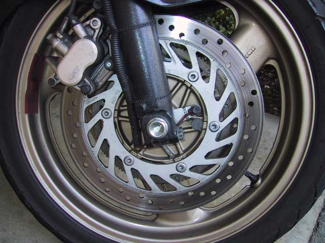 (front wheel on the ST1100). Ron knew this also of course, so he engineered this bracket for the front wheel of