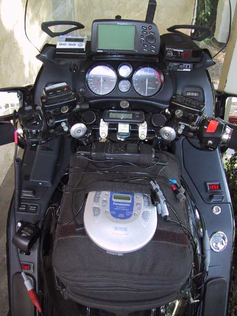 Electronic Cruise control. In the center, mounted to the Heli-Bar (from Sport Touring Associates) between the risers is a Sigma BC 800. The Heli's are fully adjustable for
